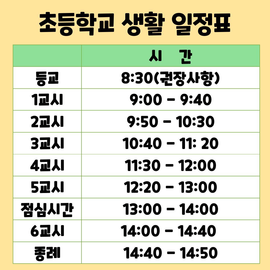 새로 오시는 담임 선생님들께서 미리 미리 공지해주시지만, 초등학교와 중학교의 대략적인 생활 일정표를 확인하셔서 미리 체크해 둔다면 조금 더 빠른 적응을 할 수 있을 것입니다.